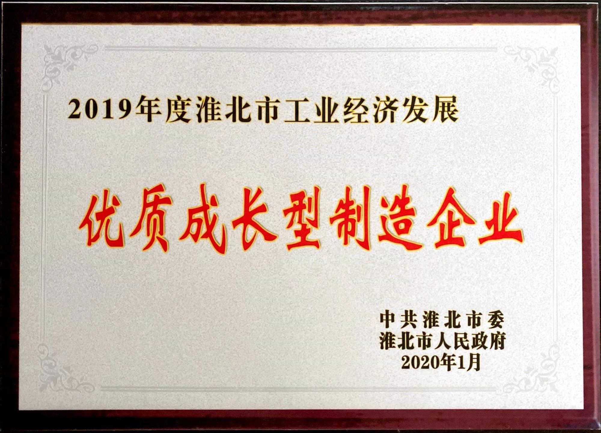 2019年度淮北市工業(yè)經(jīng)濟(jì)發(fā)展優(yōu)質(zhì)成長(zhǎng)型制造企業(yè)