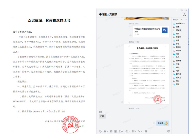 疫情面前,共克時(shí)艱,為打贏疫情防控阻擊戰(zhàn),積極響應(yīng)黨中央的號(hào)召,2月28日接到上級(jí)黨組織的捐款通知后,中煤遠(yuǎn)大黨支部立即起草了倡議書,及時(shí)將上級(jí)關(guān)于組織黨員自愿捐款支持新冠肺炎疫情防控工作的通知精神傳達(dá)到…