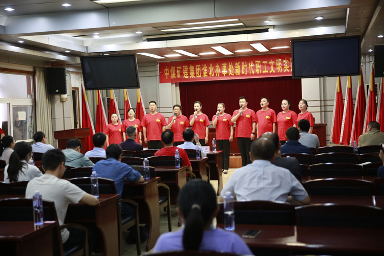 隨后,淮北辦事處的詩朗誦《紅船,從南湖起航》、我司的職工演唱《我的中國心》等節(jié)目穿插進(jìn)行,將現(xiàn)場氣氛推向高潮,引得觀眾陣陣掌聲。最后,伴隨著激情澎湃的合唱《英雄贊歌》,活動(dòng)圓滿落下帷幕。