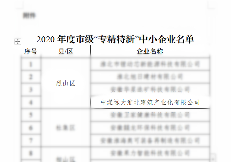 近日,淮北市經(jīng)濟和信息化局公布了2020年度市級“專精特新”中小企業(yè)名單,中煤遠大公司成功入選。